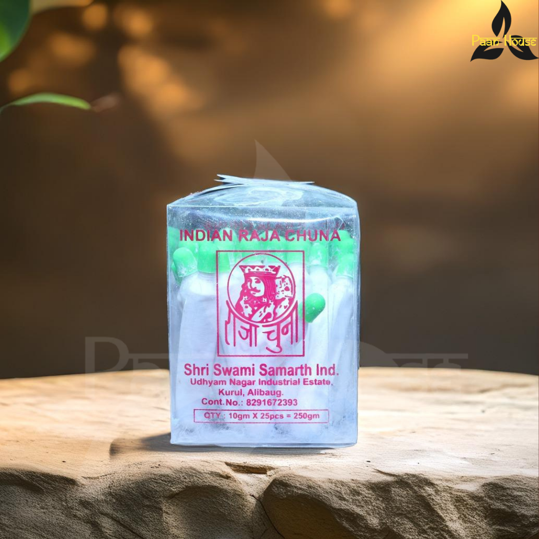 | QUANTITY | 1 TIN ( 100 GRAM), 1 TIN ( 200 GRAM), 1 PACK (RAJA CHUNA TUBE) |
